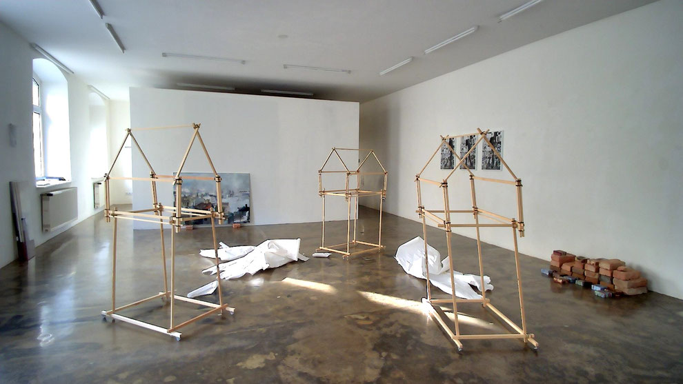 In der dynamischen Ausstellung "(Re)konstruktion der Erinnerung" beschäftigen sich drei Künstlerinnen - Monika Dorninger/Malerei, Claudia Dorninger-Lehner/Fotografie, Julia Dorninger/Installation- mit dem Begriff des Ortes. Wie lässt sich Wissen um das Potential eines Ortes generieren und wie kann dieser Prozess über künstlerische Forschung beschrieben werden? Mit welchen subjektiven Bedeutungen bzw. kollektiven Identitäten wird oder wurde ein Ort versehen und welche Erinnerungen über diese dem Ort eingeschriebenen Informationen bleiben haften?